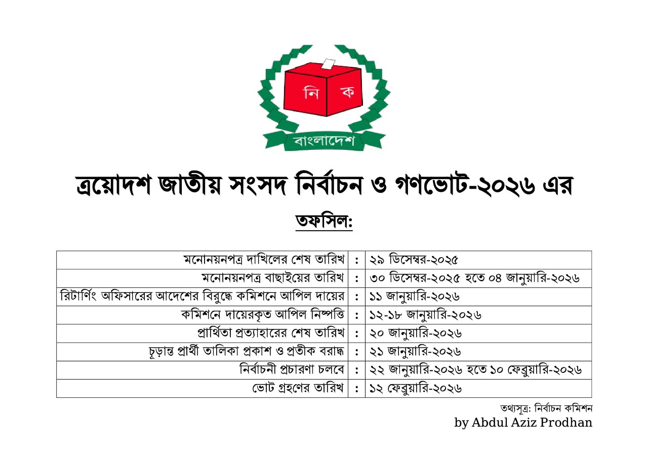 ত্রয়োদশ জাতীয় সংসদ নির্বাচনের লক্ষ্যে হালনাগাদ চুড়ান্ত ভোটার তালিকায় জেলায় ৬ টি সংসদীয় আসনে মোট একলাখ ৫৫ হাজার ১৮ জন বিস্তারিত